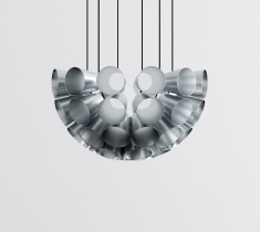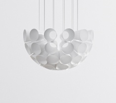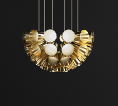 «Bellrise» lamp - which consists of 25 cone-shaped lampshades and a thin pipe, which acts as a frame and a fastening element. Inspired by the movie «Shadows of Forgotten Ancestors». Its design symbolizes centuries-old traditions and heritage of the Hutsul region. Not only a stylish accent for your space, «Bellrise» also has a deep spiritual meaning that awakens, cleanses and re-energizes the space. It is a bridge between the past and the present, reminding of the importance of preserving and passing on cultural traditions to future generations.