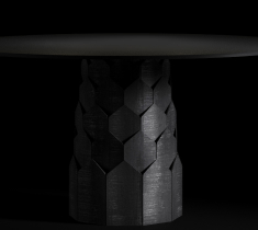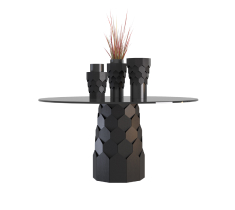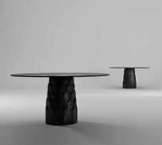 Обідній стіл із тонованого скла і конусною ніжкою, що нагадує лусочки шишки, - втілення елегантності та природної краси в інтер'єрі. Його стільниця з тонованого скла надає йому легкості та прозорості, дозволяючи при цьому підкреслити декор у вигляді гонти. Конусна ніжка забезпечує стійкість і витонченість столу, створюючи гармонійний баланс між сучасністю та органічністю дизайну. Цей обідній стіл буде чудовим доповненням будь-якого інтер'єру, надаючи йому неповторний шарм.